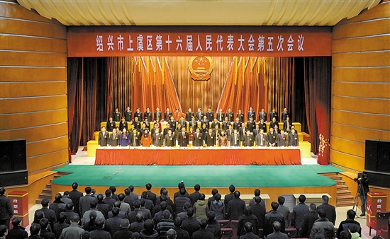 21日上午,上虞区第十六届人民代表大会第五次会议圆满完成各项议程,在上虞剧院胜利闭幕。 本次大会执行主席孙云耀、徐尧峰、陈坚、朱敏龙、蒋国良、金国松、阮妙娟、程学法、朱淼鑫、徐光华、宋世红、李培明、高彦伟、祝荣法、吴光裕和大会主席团全体成员在主席台就座。 区领导陶关锋、卢一勤、余云才、郑建庆、吕军、胡大江、胡文炜、王渭忠、王雄杰、方静、吴志育、王永表、包朝阳、赵畅、徐光仁、吴建平、傅亚文、章颖芳、蒲伟明,区人民法院院长郭黎帆、区人民检察院检察长章梁,区老领导徐淡芳、陈尔庄、杨根苗、陈维均、章永志等在主席台就座。 闭幕式由大会执行主席、主席团常务主席朱淼鑫主持。大会以举手表决的方式,通过了上虞区第十六届人民代表大会第五次会议关于政府工作报告的决议,关于国民经济和社会发展第十三个五年规划纲要的决议,关于上虞区2015年国民经济和社会发展计划执行情况、2016年国民经济和社会发展计划的决议,关于上虞区2015年财政预算执行情况和2016年财政预算的决议,关于区人大常委会工作报告的决议,关于区人民法院工作报告的决议,关于区人民检察院工作报告的决议。 区委书记孙云耀向大会圆满成功表示祝贺。他说,会议期间,代表们以饱满的政治热情和对上虞经济社会发展高度负责的态度,认真履行职责,共商发展大计,充分展现了良好的精神风貌和履职能力,达到了统一思想、凝聚共识,明确目标、细化措施的目的,是一次团结民主、求真务实的大会,是一次改革创新、开拓奋进的大会。 孙云耀指出,过去的一年,区人大及其常委会和全体代表紧紧围绕全区中心工作,以崇高的使命意识和责任担当,积极履职、主动作为,做了大量卓有成效的工作,服务大局更加有为,依法履职更加扎实,自身建设更加重视,为上虞经济社会发展作出了积极贡献。新的一年,区委十四届十次全会强调要“牢固树立‘五大发展’理念,深入推进‘四个上虞’建设,努力实现‘十三五’发展良好开局”,这次会议审议通过的政府工作报告和“十三五”规划纲要,进一步细化了区委总体工作部署,明确了“十三五”时期和今年的目标任务,把区委决策转化成为了全区人民的共同意志。全区上下要切实把思想和行动统一到区委的决策部署上来,把智慧和力量凝聚到“两会”明确的目标任务上来,抓实重点,强化举措,狠抓落实,确保各项决策部署落到实处。 孙云耀强调,深入推进“四个上虞”建设,实现“十三五”发展良好开局,需要我们坚定信心奋发有为,需要我们抓实重点精准发力,需要我们齐心协力狠抓落实。要切实强化“起跑影响全程、开局决定全局”的意识,努力抢抓发展机遇、厚植发展优势、破解发展困境、赢得发展主动,下好先手棋、确保开好局。要坚持以转型升级为工作主线,大力推进创新发展;坚持以城乡统筹为基本要求,大力推进协调发展;坚持以生态文明为目标取向,大力推进绿色发展;坚持以市场规律为重要遵循,大力推进开放发展;坚持以增进幸福为根本追求,大力推进共享发展。要强化担当,提振精神,强化督查,以责任清单制管理推动工作落实,确保各项工作有目标、有抓手、可督查、可追责,保质保量完成全年目标任务。 孙云耀强调,区人大及其常委会要继续坚持正确政治方向,紧紧围绕全区工作大局,务实高效行使职责,进一步加强同人大代表和人民群众的联系,在服务发展大局上有新成效,在建设法治上虞上有新进展,在发挥代表作用上有新作为,在加强自身建设上有新提升,不断提升人大工作水平。区委将一如既往重视和支持人大工作,积极为人大工作创造良好条件,各级党委要把人大工作纳入工作的总体布局和重要议事日程,在思想上、政治上、组织上支持和推动人大工作。 孙云耀最后强调,目标催人奋进,实干成就事业。让我们更加紧密地团结起来,齐心协力,攻坚克难,狠抓落实,确保实现“十三五”发展良好开局,不断开创“四个上虞”建设新局面! 新任区长陶关锋在闭幕式上讲话。他说,我为能够服务上虞的发展而深感荣幸和自豪,深知肩上所担负的重任。当前,上虞正迎来全面建成更高水平小康社会的关键时期,目标愿景催人奋进,今后工作中,我将始终保持昂扬的斗志和务实的作风,在区委的正确领导下,在区人大、区政协和全区人民的监督支持下,团结带领政府一班人,凝心聚力谋发展,全力以赴抓落实,不断开创“四个上虞”建设新局面。 陶关锋代表区政府班子庄严承诺,始终坚持发展为要,把创新发展作为第一要务,坚定不移地按照区委的决策部署和“十三五”发展规划纲要,一张蓝图绘到底,一以贯之抓落实,为建设更有实力、更富活力、更具魅力的上虞而竭尽全力。始终坚持为民宗旨,把以民为本作为科学决策的首要原则和加快发展的第一前提,坚持贴近群众、服务群众,做到权为民用、利为民谋,把更多财力投向民生,努力让全区人民更好地共享发展成果。始终坚持依法行政,咬定法治政府建设目标,把依法行政贯彻落实到政府工作的各个领域各个环节,不断提升政府的透明度和公信力。始终坚持团结实干,把团结务实、勤政实干作为成事之基,带头维护好区委的领导和班子的团结,充分发挥政府领导班子整体效能,广泛凝聚社会各界力量,以实干担当的作风心无旁骛地抓发展。始终坚持清正廉洁