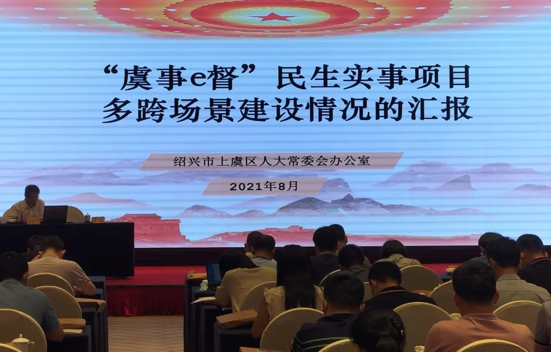 9月1日,全省人大数字化改革研讨培训班在绍兴召开。全省共有八个县(市区)上台介绍相关应用场景建设情况,我区人大常委会作为绍兴市人大系统唯一上台交流的单位,就“虞事e督”民生实事项目多跨场景建设情况作了介绍。